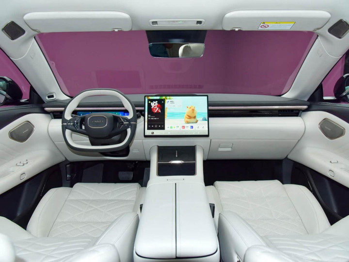 配置方面,车里面提供50W无线快充、256色RGB AI鎏光氛围灯、车载冰箱、后排还配有小桌板以及23扬声器哈曼卡顿音响系统等。