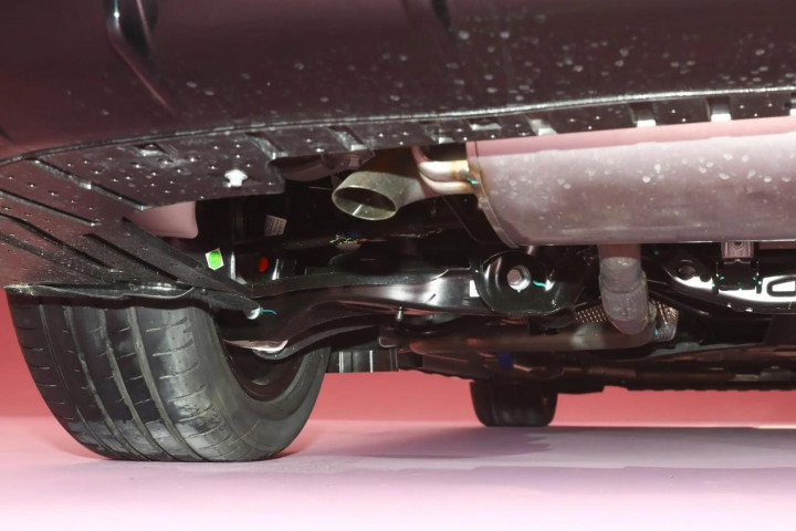 搭载金砖混动专用电池,容量有2种,分别为18.4/38.2千瓦,对应CLTC纯电续航分别为120/240公里,电池电量从30-80%需要15分钟。底盘采用双叉臂+后五连杆独立悬架,并全系标配FSD可变阻尼悬架。